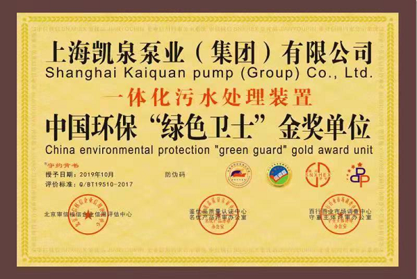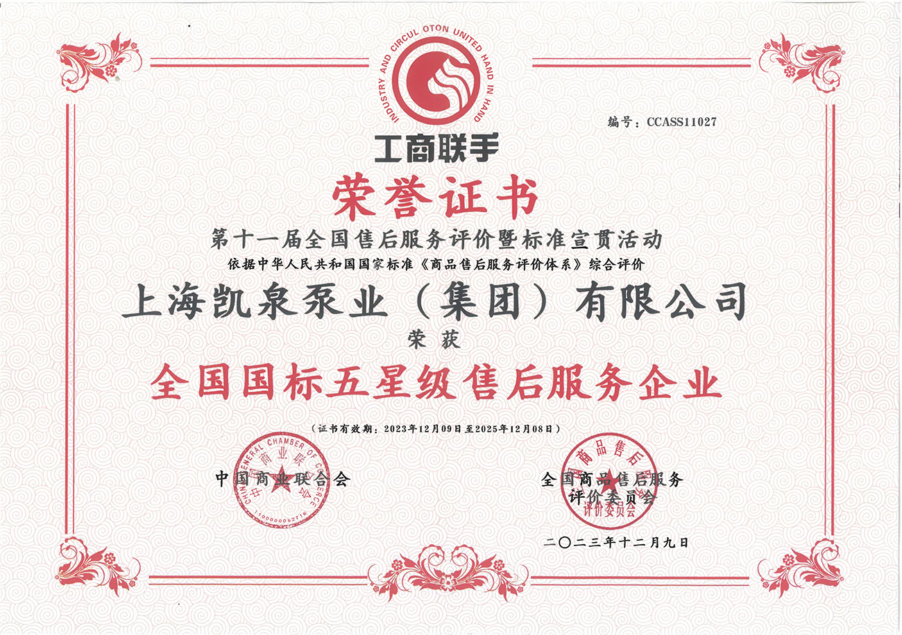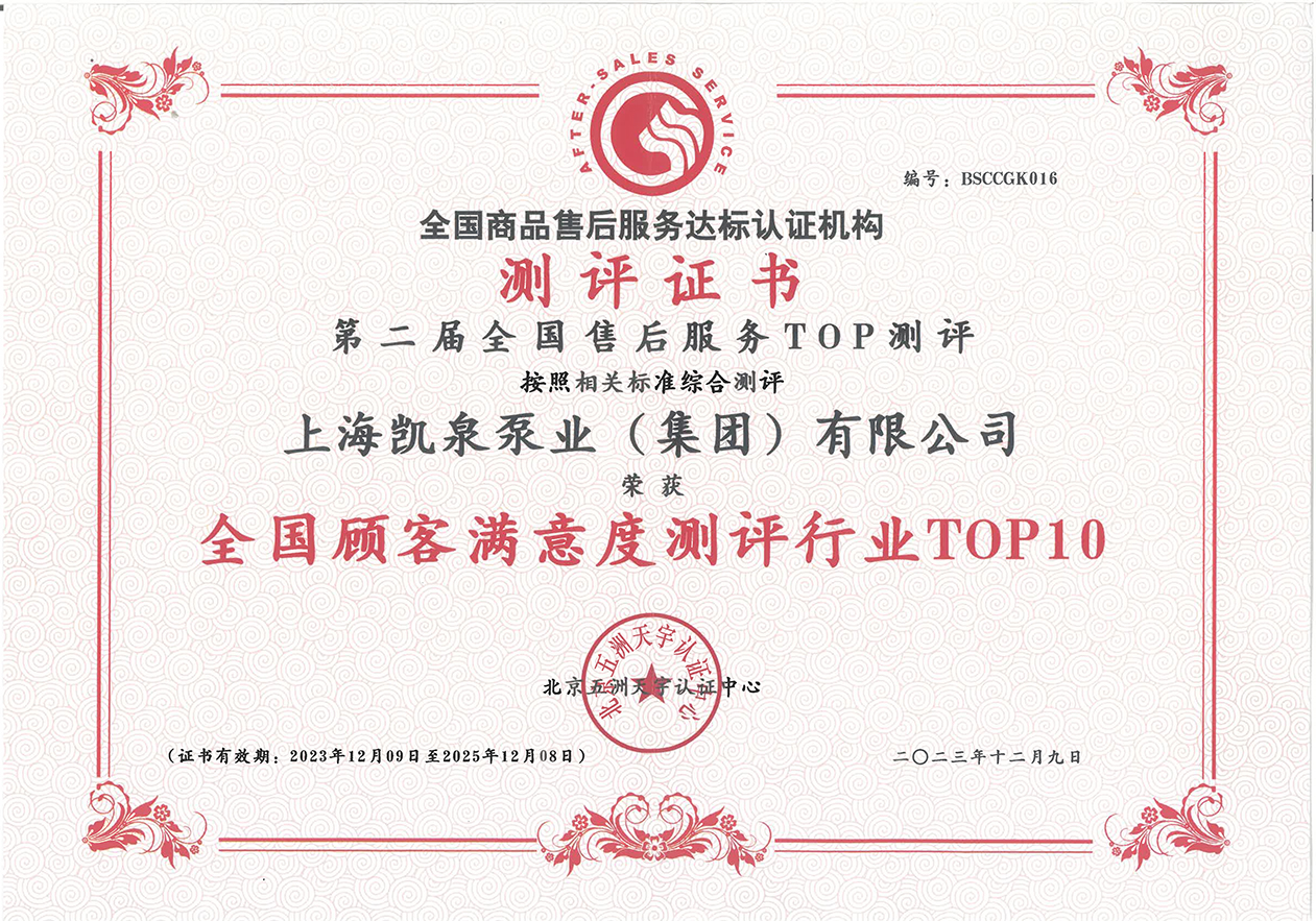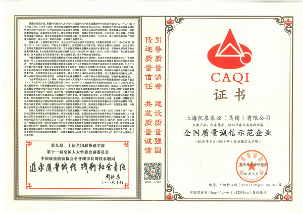 凯泉品牌被评为“全国水泵行业质量领先品牌”