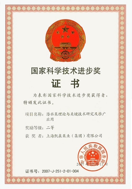 集团潜水泵理论与关键技术研究及推广应用荣获“国家科学技术进步奖二等奖”