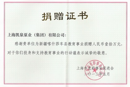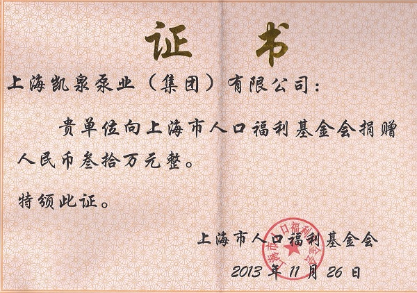 上海凯泉泵业有限公司向玉树地震灾区捐款50万元