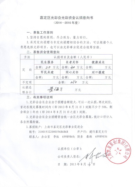 集团认捐光彩事业300万元