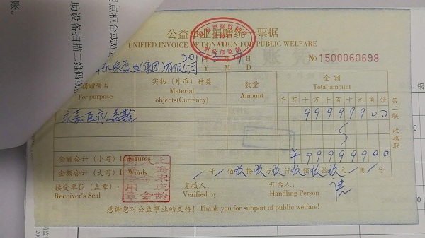 集团捐赠宋庆龄基金会999999元