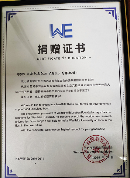集团捐赠杭州西湖教育基金会200万元