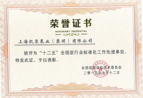 集团被评为“全国泵行业标准化工作先进单位”