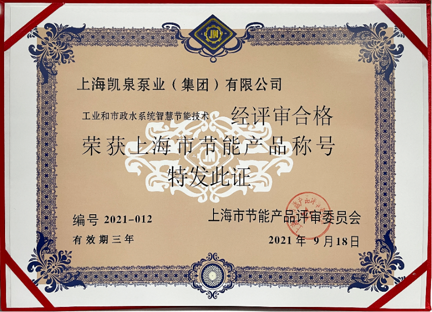 凯泉 “循环水系统高效节能技术”成功入选“上海市节能减排技术产品”