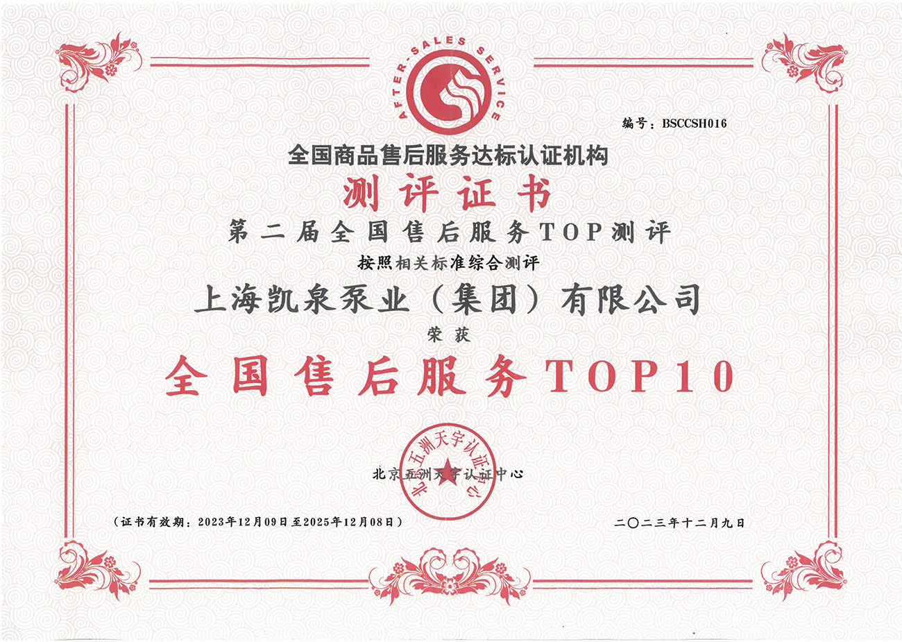 全国国标售后服务五星级证书